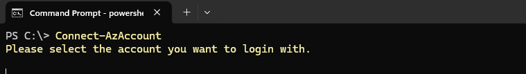 Once installed, we can log in with the module by using “Connect-AzAccount.”
